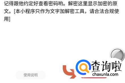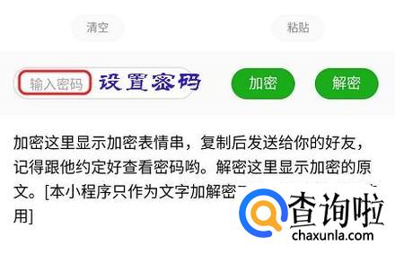 好友想要查看其中的内容,需要同样打开“一封密信”小程序,然后将刚才聊天窗口的内容粘贴到输入框,如图一...将密码输入进去然后点击“解密”即可下方即可显示这对表情对应的文字消息了;