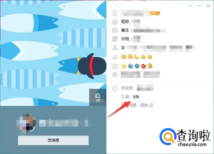 弹出一个对话框,我们就可以查看Q龄了。