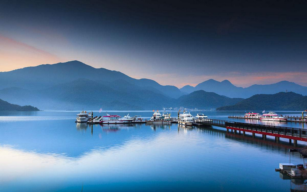 8、日月潭位于中国台湾省阿里山以北、能高山之南的南投县鱼池乡水社村,湖周35公里,水域9平方公里多,为全省最大的天然湖泊,也是全国少数著名的高山湖泊之一。其地环湖皆山,湖水澄碧,湖中有天然小岛浮现,圆若明珠,形成“青山拥碧水,明潭抱绿珠”的美丽景观。清人曾作霖说它是“山中有水水中山,山自凌空水自闲”;陈书游湖,也说是“但觉水环山以外,居然山在水之中”。环潭一带地方古称水沙连,分属南投县鱼池乡。日月潭凭着“万山丛中,突现明潭”的奇景而成为宝岛诸胜之冠,驰名于五洲四海。