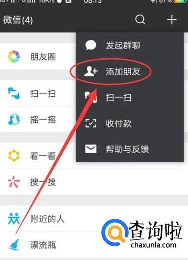 打开之后,点击“添加朋友”,进入到下一页面,如图所示。