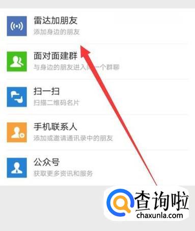进入之后,点击“雷达加朋友”,进入下一页面,如图所示。