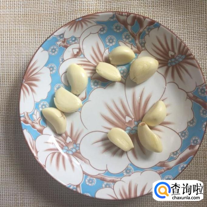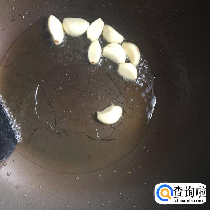 然后把蒜头剥好,锅中放入适量的食用油,待油冒烟,倒入蒜头爆香。