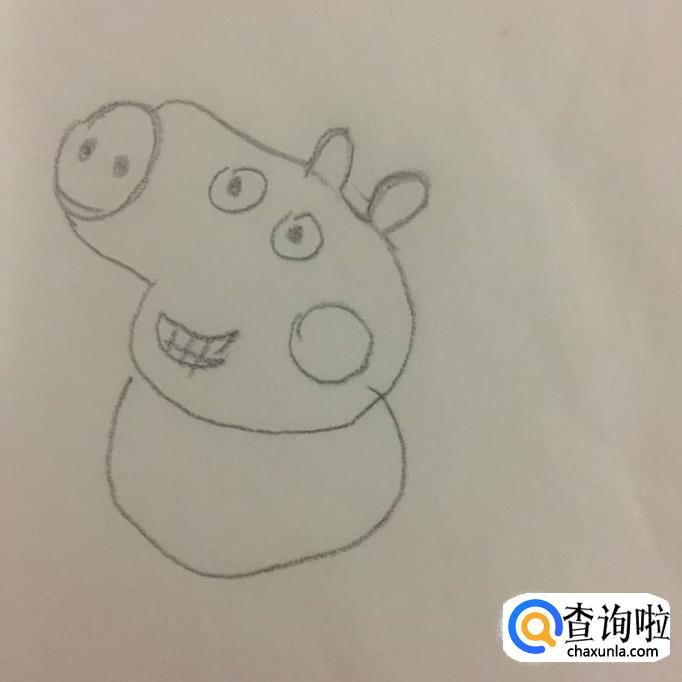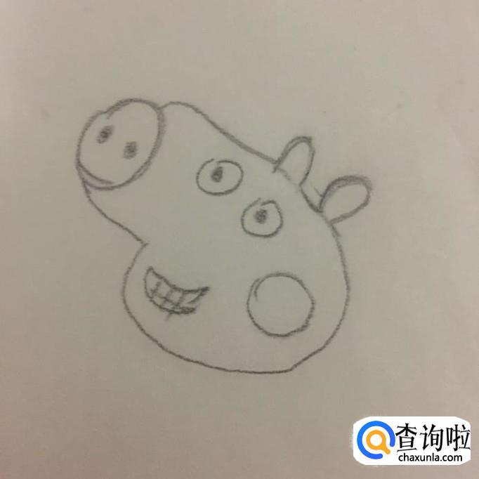 接着画出小猪乔治的眼睛,嘴巴和脸蛋,如下图所示。我们在画小猪乔治嘴巴的时候可以画成一个月牙的形状,如下图所示。