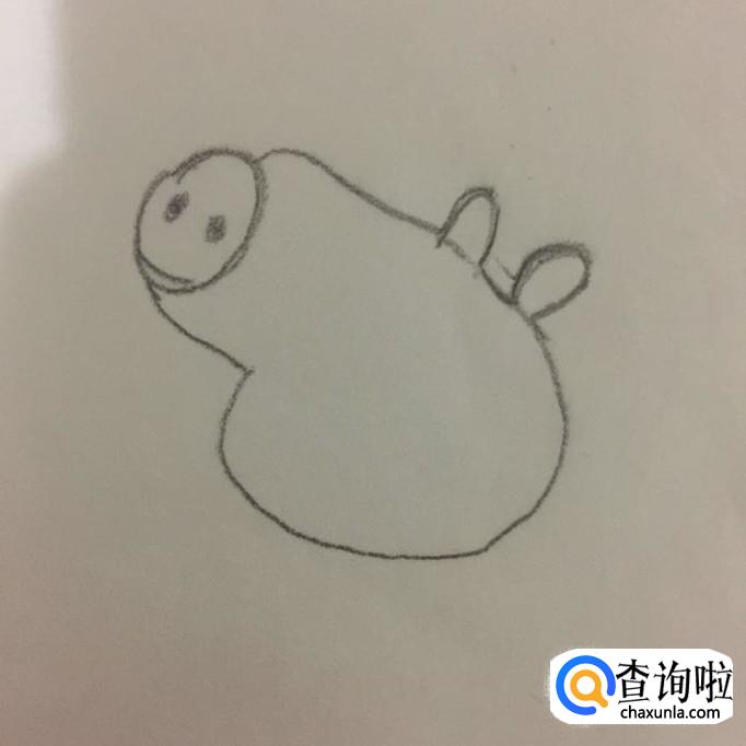 然后画出小猪乔治的脑袋轮廓和耳朵,如下图所示。