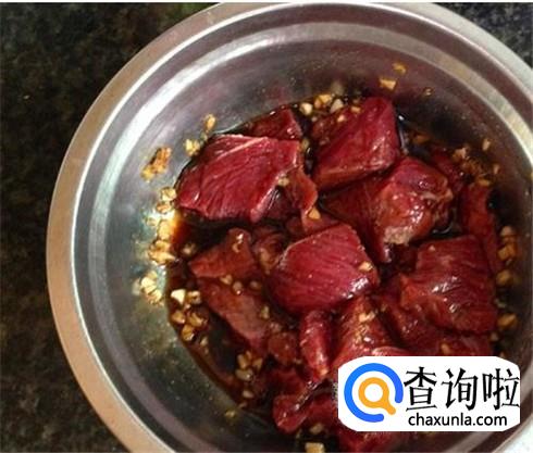 牛肉买回来之后清洗干净,然后在清水里浸泡十分钟,捞出来之后切小块,加点料酒以及葱姜腌制几分钟。