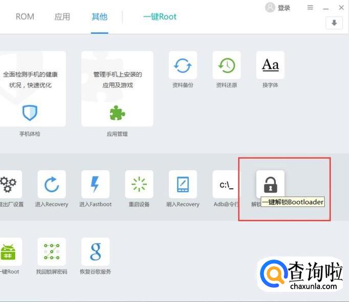 如果要接触手机上出厂设置的BootLoader锁的话,只需要点击软件页面中的BootLoader锁菜单,也可以实现类似的功能。