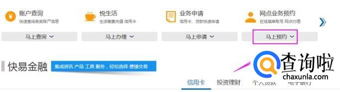我们看到“网点业务”点击“马上预约”那三角形,如图。