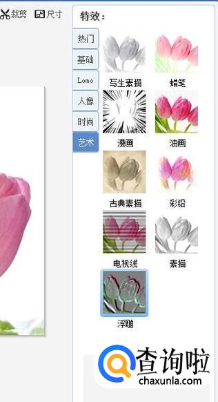 点击右侧特效栏的艺术,就可以看到艺术的特效,如图所示。