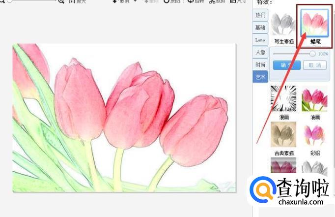 点击“蜡笔”即可看到图片被处理成蜡笔画的效果,如图所示。