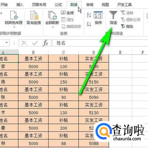鼠标点一下A43单元格;再点数据菜单;下面展开相关的内容。再点:筛选