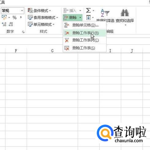 再点开始选项卡,在下面展开的内容中再点删除的下拉按钮,在弹出的菜单中再选择:删除工作表行