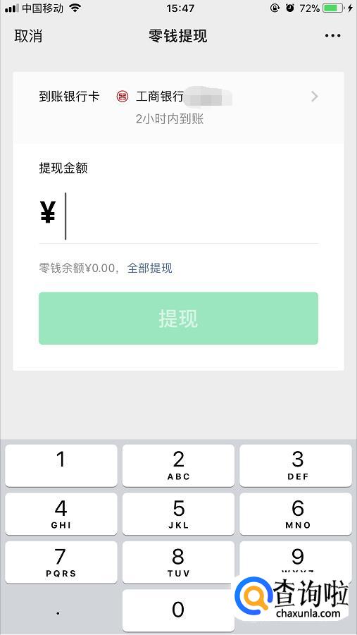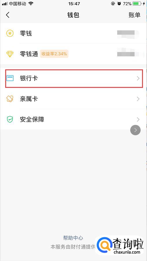 选择银行卡,将钱包里的钱转到所选银行卡内;