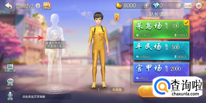 比如进入血流2V2模式之后,左侧就还会有一个空位,点击这个透明的小人进行邀请。
