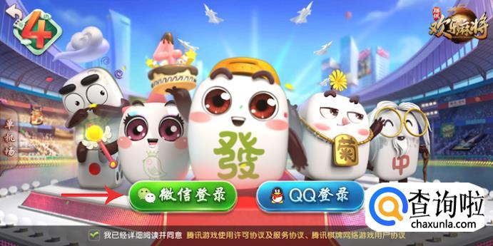 打开下载好的腾讯欢乐麻将进入主界面,选择相应的账号进行登录,要注意微信登录后只能和微信好友玩,QQ登录和只能和QQ好友玩。