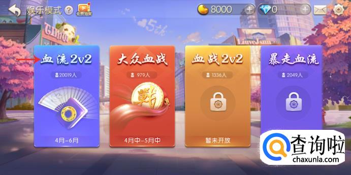 进入娱乐模式之后,能够看到有两种2V2的模式,点击进入,只有这两种模式能够邀请好友。