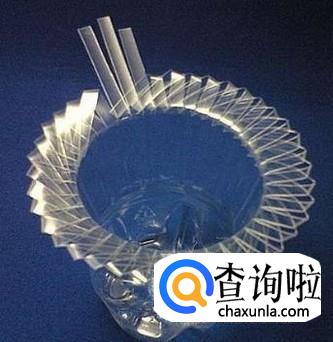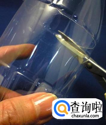 留下下面的部分,接着用剪刀顺着瓶口,竖着往下剪,剪成条状,剪到离瓶底还有10厘米的地方就收刀。