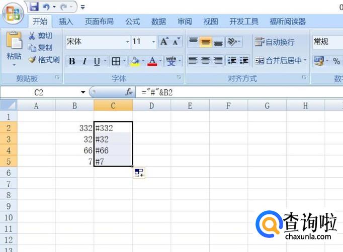下拉完成后,如图所示,这样我们就将该组数字的前面全部添加了一个符号,这个是&的运用之一。