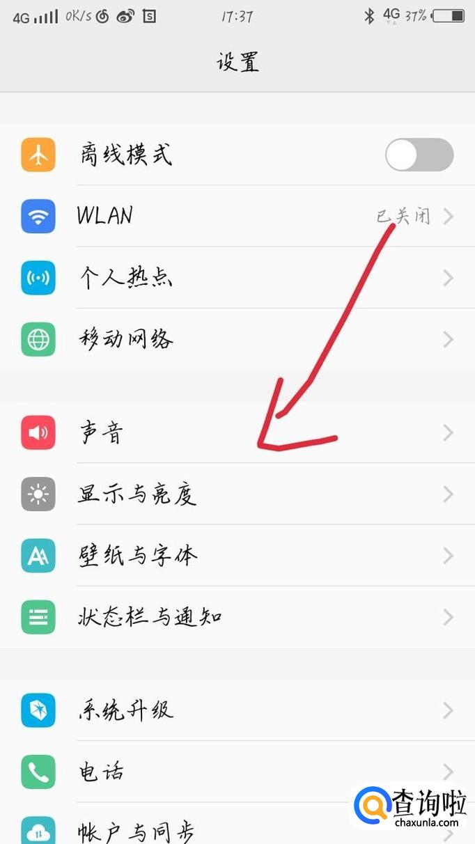 点击“声音”这个选项,如图1箭头所示。你会看到出现一个新的界面,如图2所示。