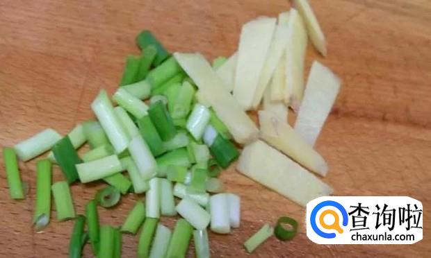 接着把准备好的葱和姜切一下,葱切成碎末,姜切成细块即可,如下图所示