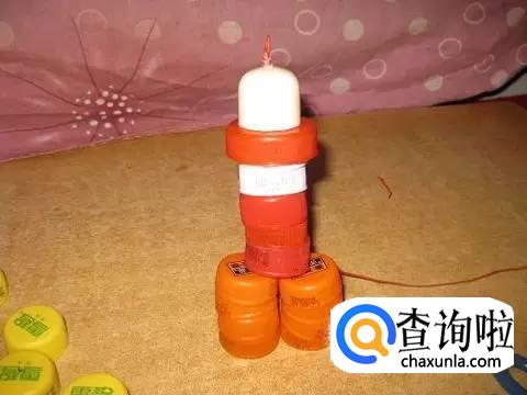 再来串机器人的身体和头部,找好相应的瓶盖,最后把头部打个圈结。