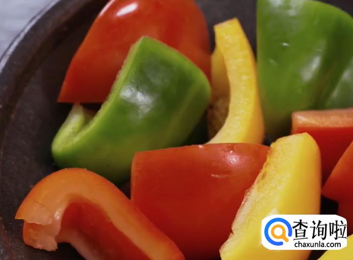 胡萝卜、青椒、红椒、黄椒、姜片、蒜瓣、洋葱、香菜、八角、蚝油、白糖、盐、生抽、啤酒、花生油