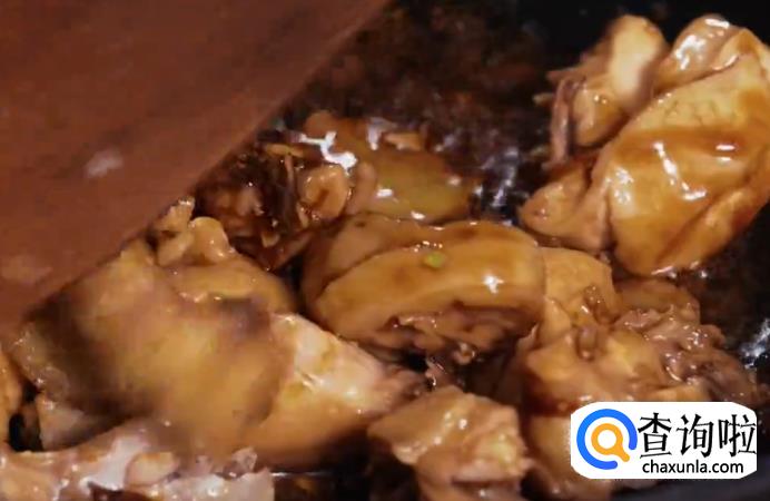 之后在油锅中加入蒜末爆香,加入鸡块翻炒片刻,随后加入八角、姜片、生抽、蚝油、糖一起炒。