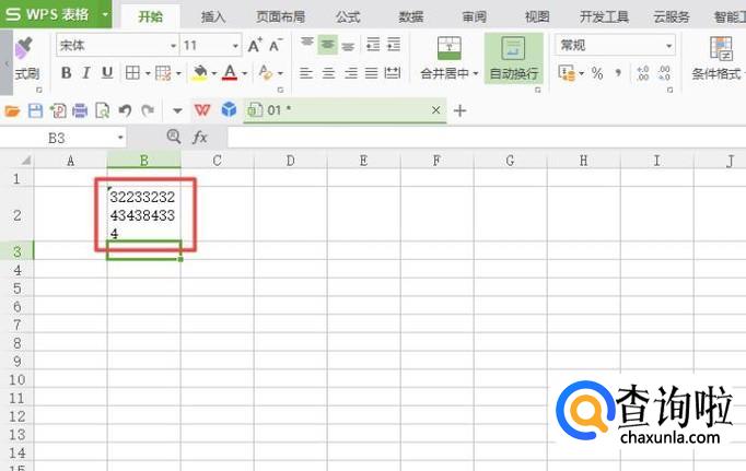 然后我们在文档中任意一个单元格中输入一个较长的数字,然后按回车键,我们可以看到便自动换行了。