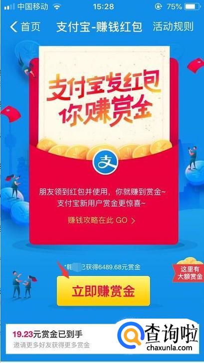 点击进去之后看到立即赚赏金,我们先点击一下获取口令。