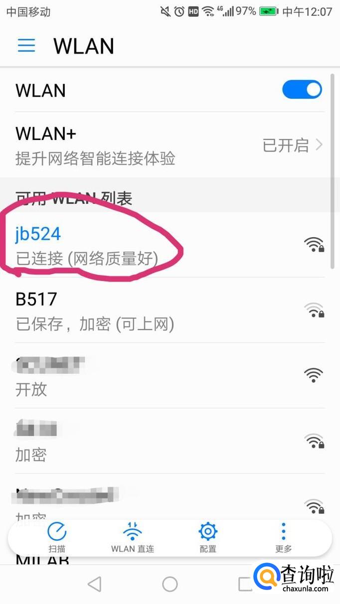 首先选择你要查看的wifi,如图,选择jb524。