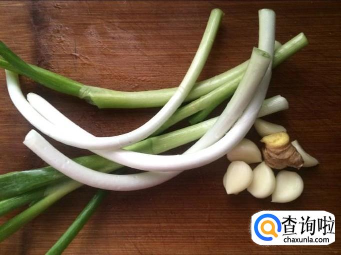大葱洗净切段,大蒜去皮洗净,姜去皮洗净切片,小葱洗净切碎。