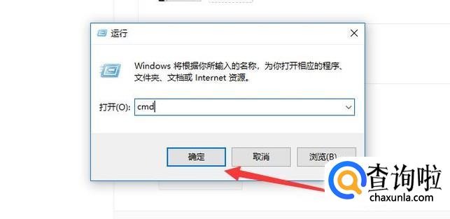 打开“运行”之后,输入“cmd”,然后点击“确定”,如图所示。