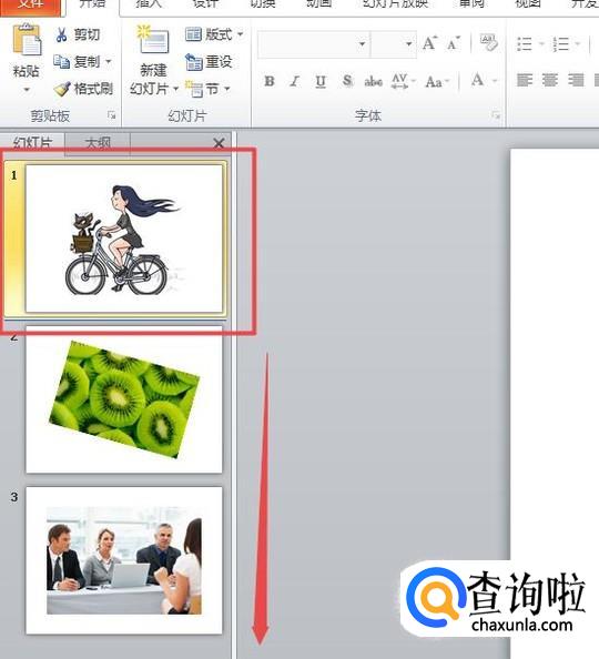 之后我们点击第一个幻灯片不要松,然后拉到最下方;