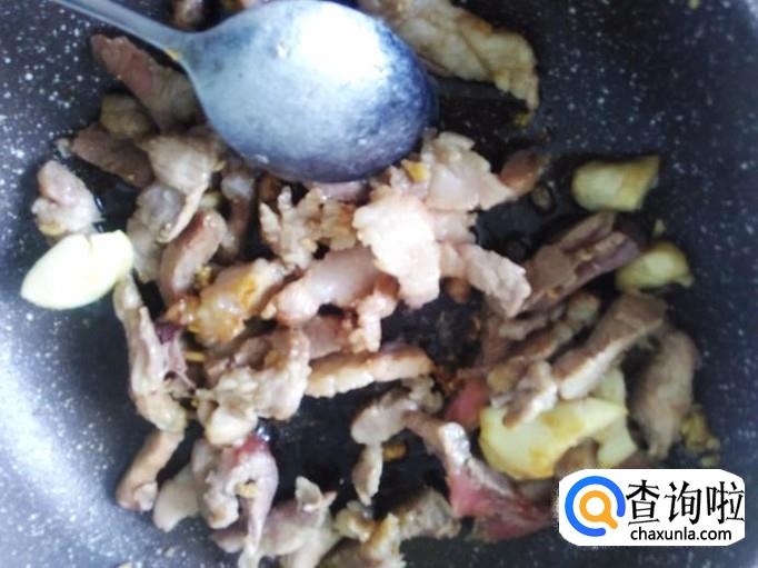 热锅起油,放蒜米爆香,然后放瘦肉进去爆炒至变色。