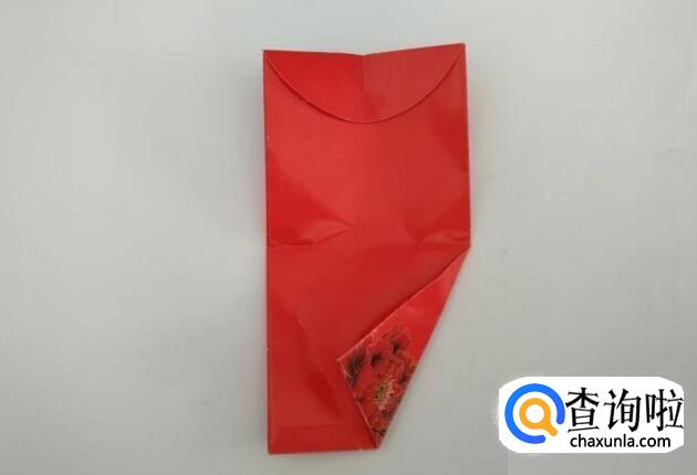 将其中一个红包的开口折下来,然后把上边和底边沿中心线左右对折折出中心点,左边和右边也折出中心点。