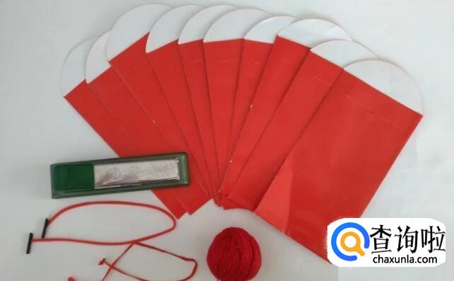 准备10个红包、2条粗的红色线绳和一些细的红线。