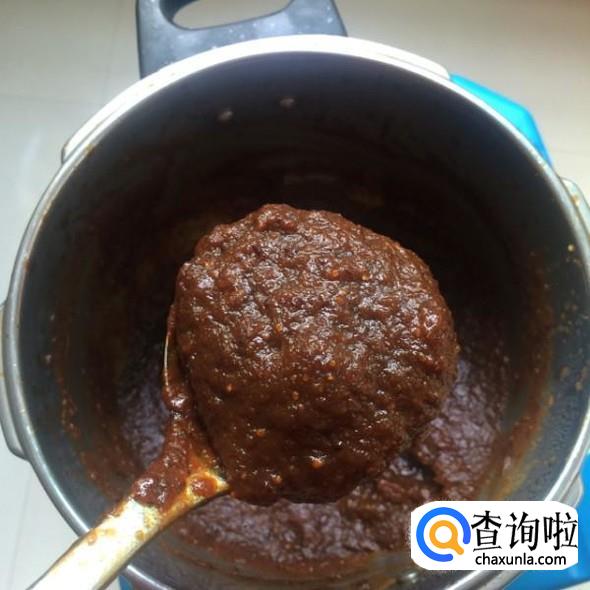 把打好的姜泥,红枣,红糖一起放入锅中,大火煮开小火慢熬,应该用不粘锅操作。