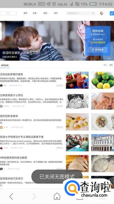 打开搜狗浏览器,有时候我们会遇到图片无法加载的情况。这有可能是我们开启了“无图模式”,我们只需把这个模式关掉即可。