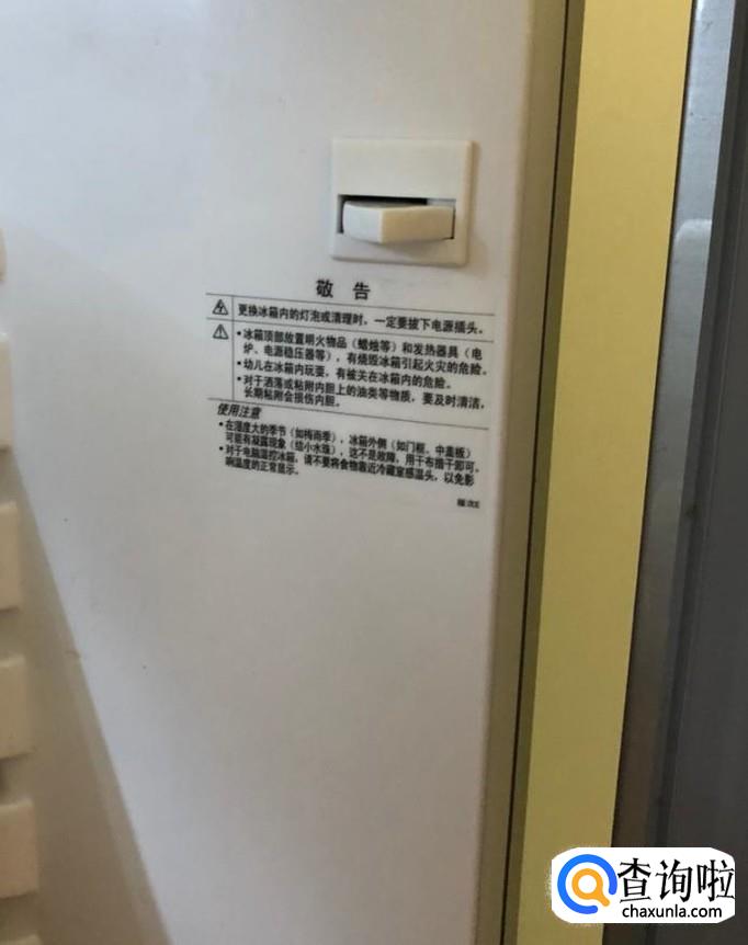 首先,大家应该思考一下,灯泡是不是因为开关坏了二导致不亮的,这时候,我们应该打开冰箱门,在门右边框框中间靠里就是,如下图所示,来回按一下,看灯炮是否正常,如果还是没亮那就说明灯泡坏了