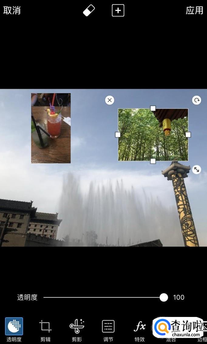 选择好图片并添加,然后通过下面的工具栏对所添加的图片进行编辑处理,这样就实现了把两张、多张图片放到一张图中的目的。