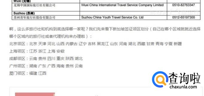 面对繁杂的旅行社和机构,我们应该如何选择呢?我们可以跟办理过新加坡旅游签证的朋友打听,询问一家靠谱的机构。而且所在区域不同,划分的领区也不相同。下图是详细情况。比如小编是山东人,需要到北京领区办理旅游签证。