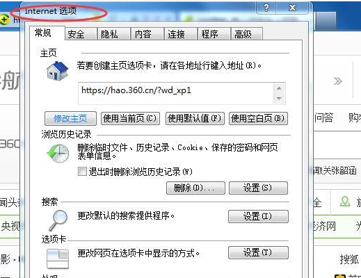 2、在浏览器界面上会弹出【Internet选项】窗口,如下图所示: