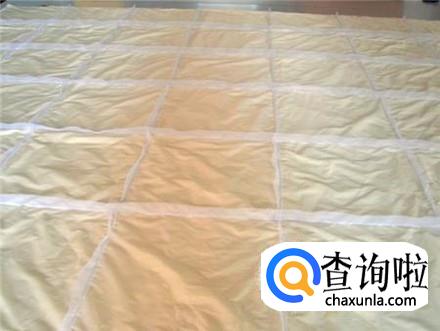 将羽绒被面料进行裁剪,这个很简单的,羽绒被充绒分为一个格一个格的进行,那么将被面用缝纫机缝起来,将羽绒填进去,然后继续下一道,直到全部充完。