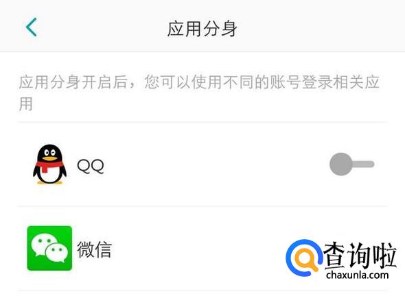 应用分身,这个功能大部分手机都有,为了迎合大众对社交软件的使用需求——一人多号而设计的,打开开关后,手机桌面会出现两个QQ和微信;