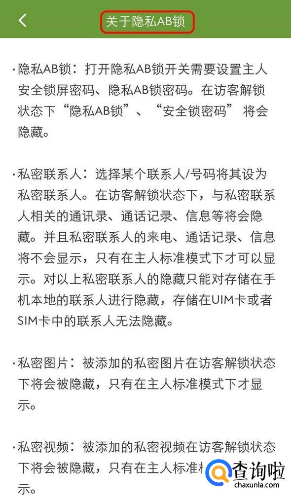 隐私AB锁,说白了就是主人用和别人用是有区别的,主要是一些隐私信息,也就是说,只要不想给别人看到的都可以在这里设置;