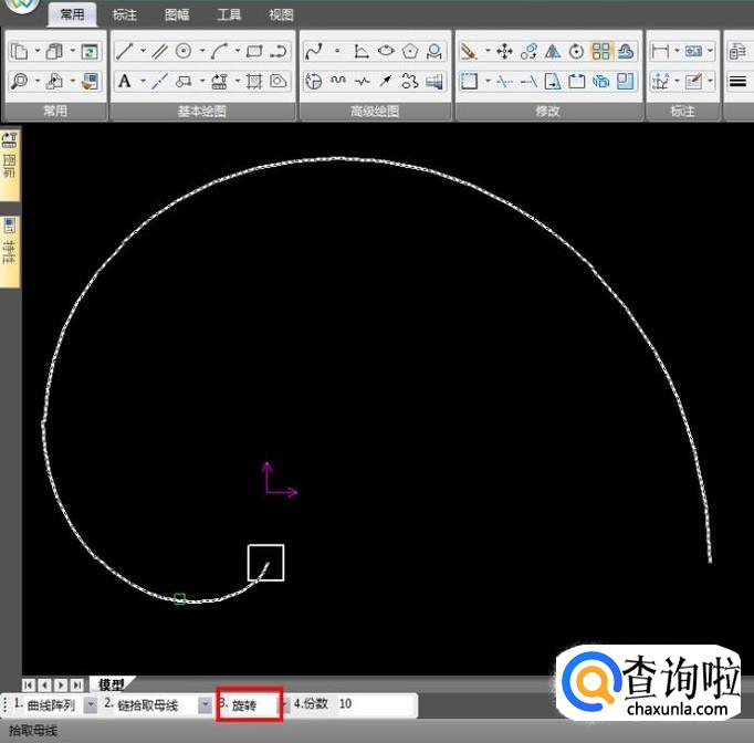 第2步选择基点,最好是选择绘制阵列图集的曲线端点,防止出错;
