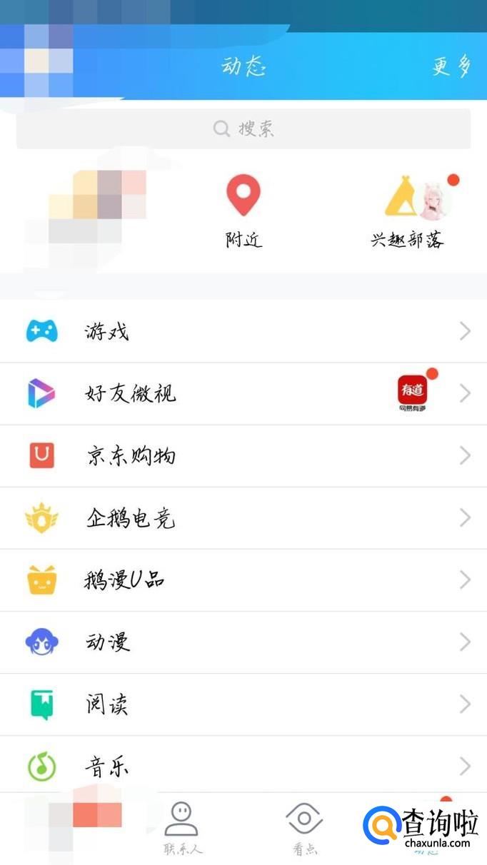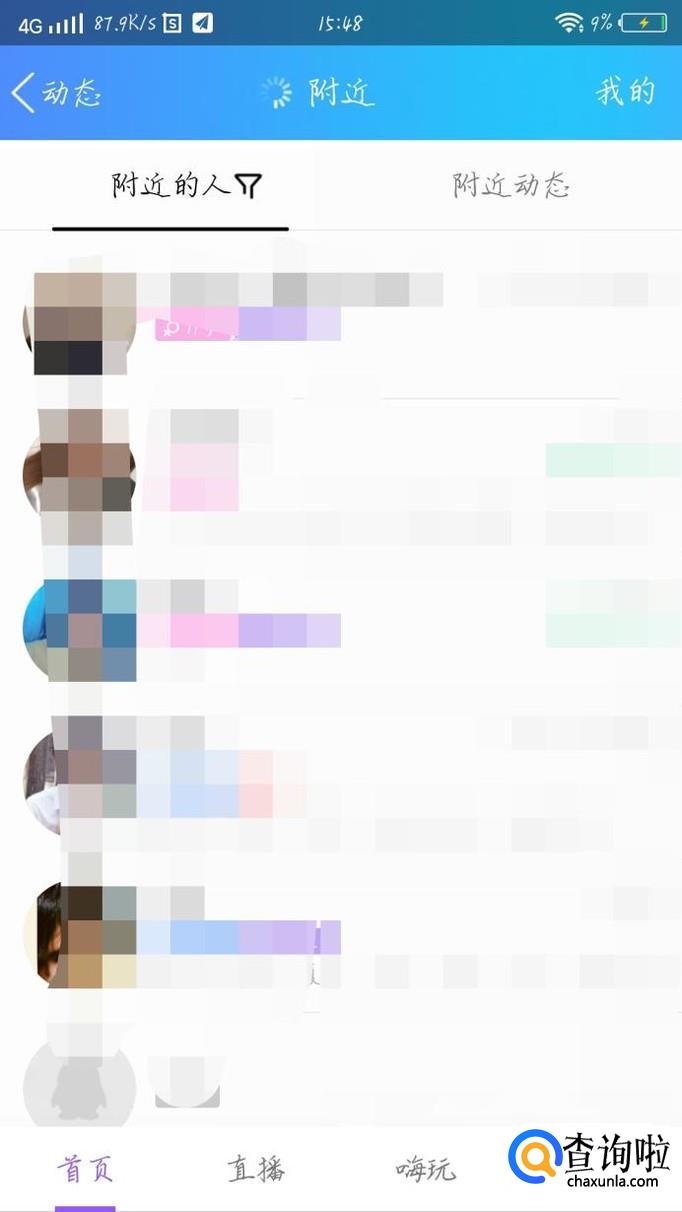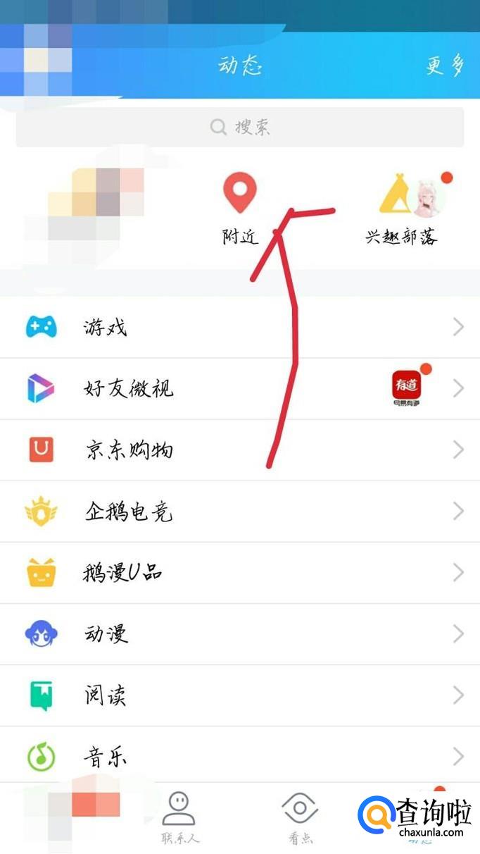 点击“附近”这个选项,如图1箭头所示。会出现一个新的界面,如图2所示。