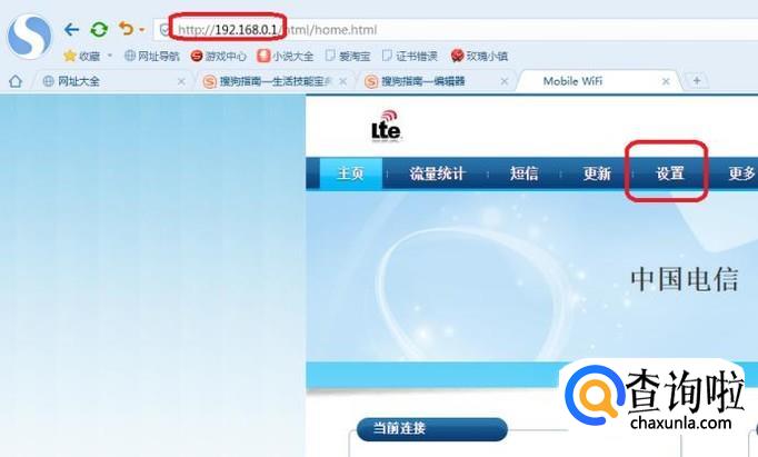 进入该IP地址后,找到路由器的“设置”按钮,点击进入。