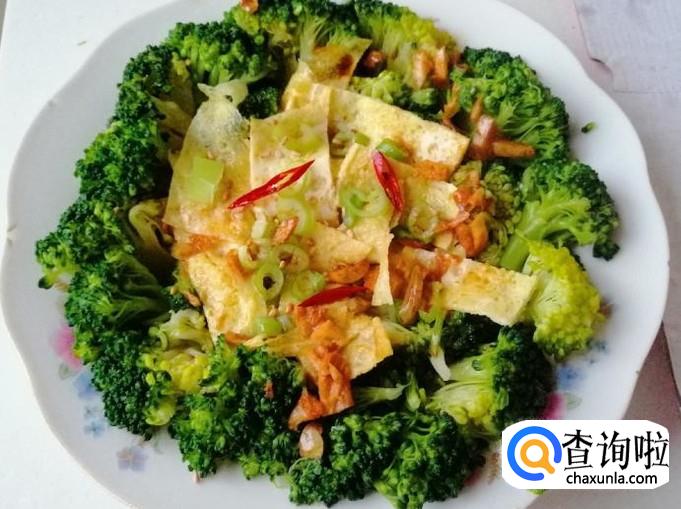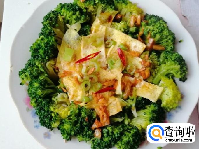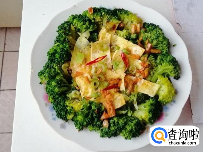 选用新鲜的西兰花用清水洗净,用刀把西兰花切成小朵,用盐水泡一会,最后再洗一遍待用。