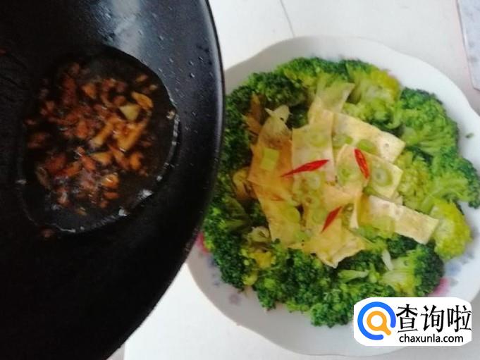 把调好的汁浇在西兰花鸡蛋饼上,调味这一步根据自己的口味调制,我不喜欢味精,所以做菜不习惯用味精,最后把西兰花鸡蛋饼搅拌均匀就可以开吃了。