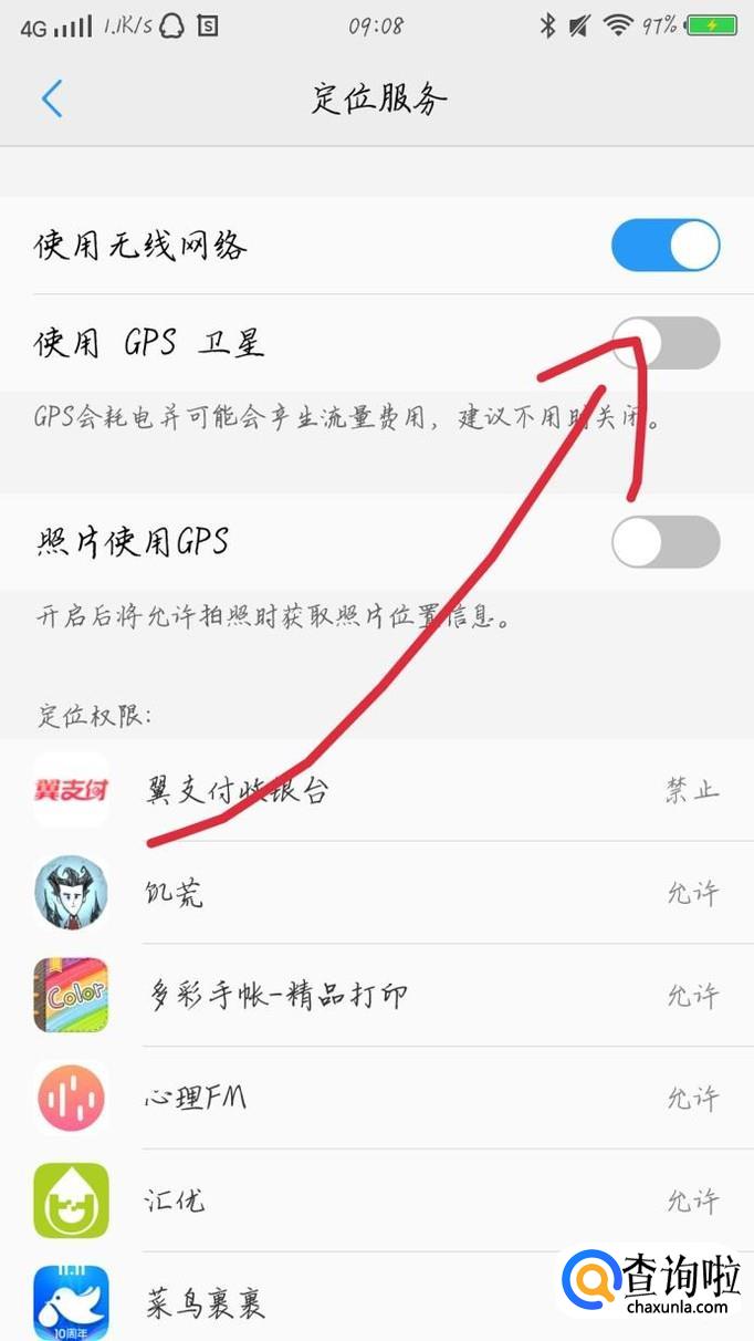 你可以点击“使用GPS卫星”选项,如图1箭头所示。这样位置会很精确,就是会有点浪费流量。